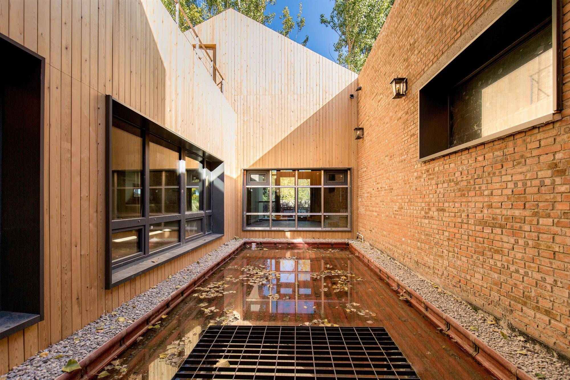 中心的水院,把原民居拆下来的屋面瓦铺到了池底